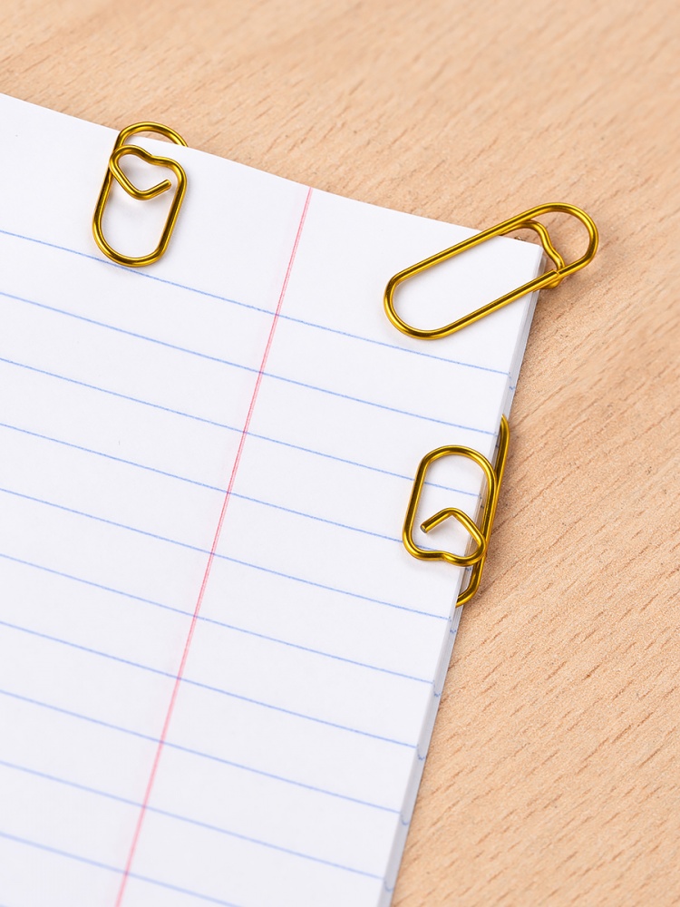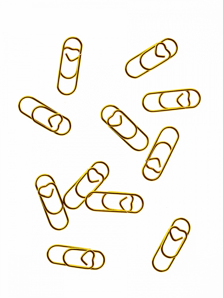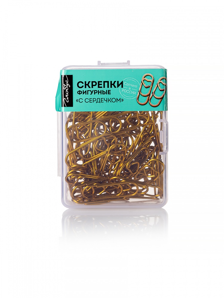 Фигурные канцелярские скрепки с сердечком цветные. Длина 28 мм. Прочно скрепляют бумагу и не повреждают ее. В удобном евробоксе 50 скрепок. Цвет золотой.