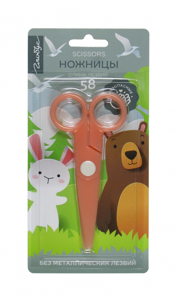 Ножницы без металлических лезвий, длина лезвий 58 мм, блистер